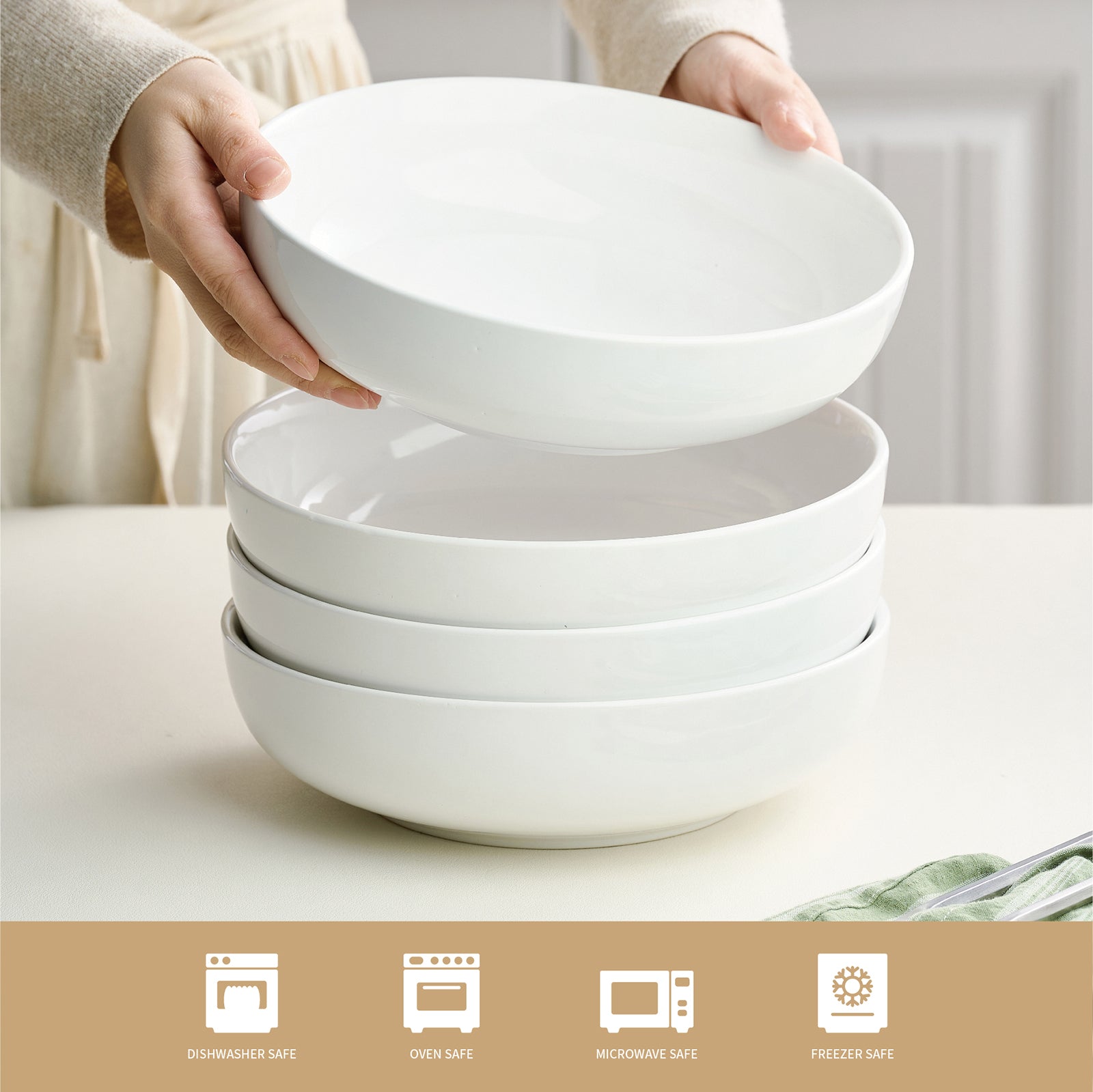 Multi-Purpose: These ceramic bowl sets can be used as pasta bowls, salad bowls, cereal bowls or as a main course, as well as for a jar of soup, breakfast bread and butter, seafood, casseroles and fruit. Versatile and suitable for all occasions, whether eating at home, in the cafeteria or in a restaurant | ||