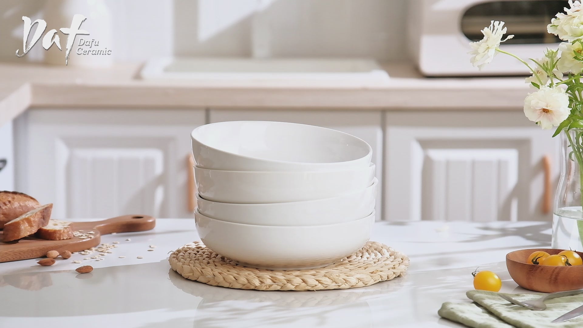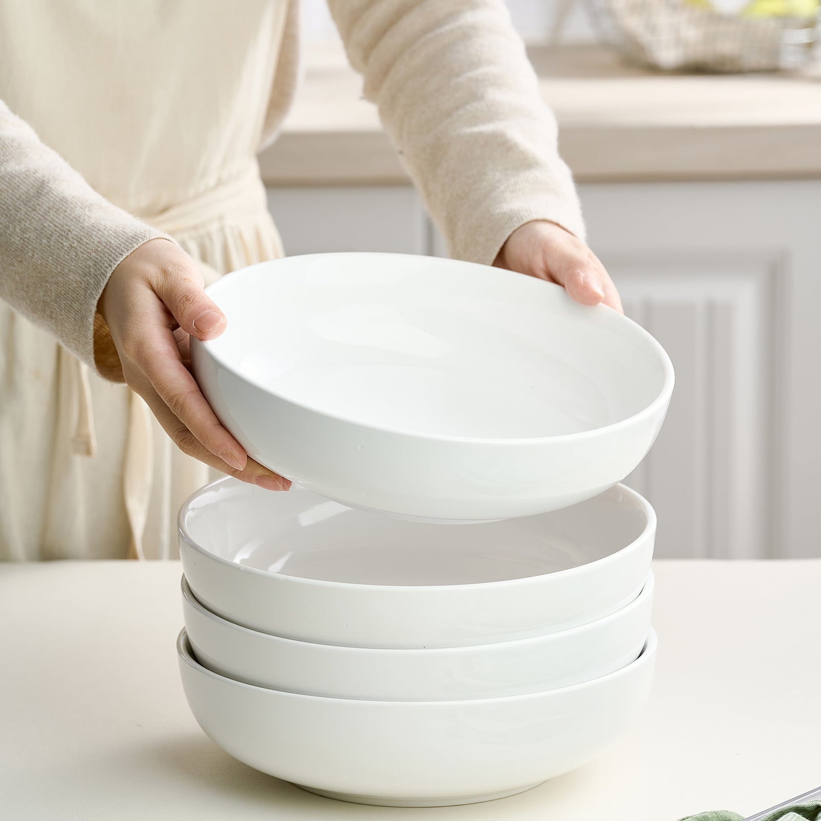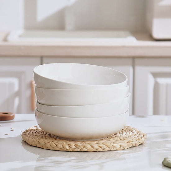 Dafuceramic 8.5Inch Pasta Bowls, 36OZ Serving Bowls, Salad Bowls Set of 4 Ceramic Soup Bowls Sturdy & Stackable, Ideal for Housewarming, Festivals, White (36 OZ)